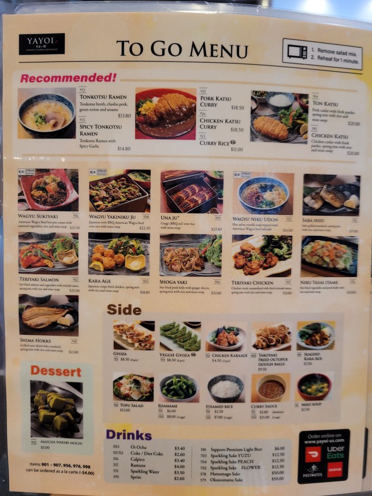 YAYOI Menu
